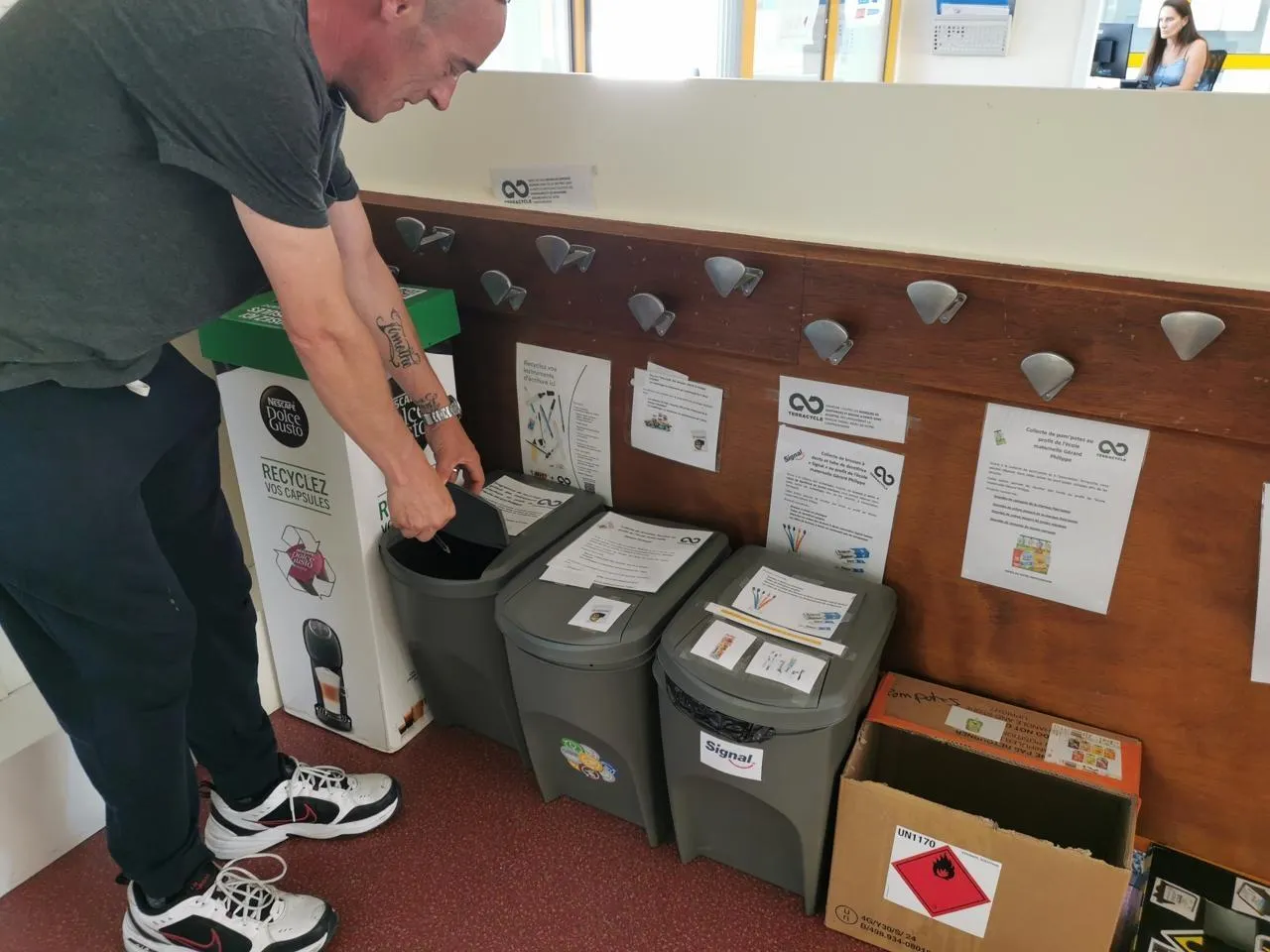 . Il revient sur sa démarche : J’ai découvert l’association TerraCycle, qui traite des déchets difficilement recyclables, sur internet. Cette entreprise permet de récupérer et de recycler plus de choses qu’avec le tri mis en place par les collectivités. J’ai voulu essayer à l’école, à la maternelle Gérard-Philipe pour commencer, et vu le résultat, la directrice Céline Armange a donné son accord pour installer les bacs de récupération dans l’entrée de l’école, bien en vue des parents. Elle a aussi accepté de rédiger un mot d’explication à mettre dans les cahiers des élèves