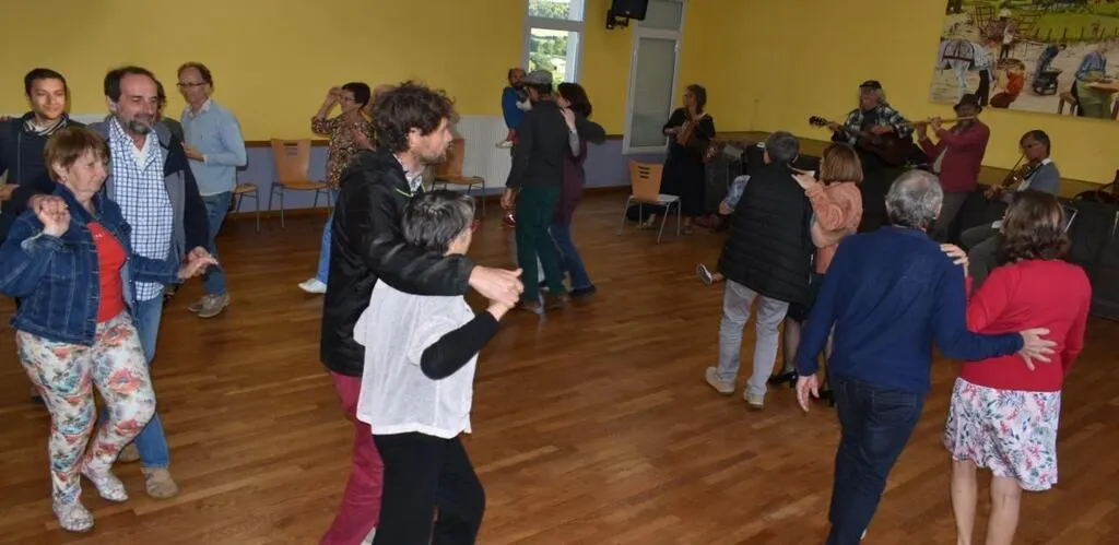 Samedi, la salle des fêtes communale s’égayait au rythme des polkas, scottishs, mazurkas et autres danses d’inspiration traditionnelle. Dans une ambiance de fête des voisins, après avoir avalé un dîner composé de quelques acras et de bœuf mariné, quatre musiciens du groupe « Quelques de Gréez », ayant la particularité de s’être formé pendant l’épidémie de Covid, s’emparaient d’instruments tels que guitare, accordéon diatonique, violon, flûte traversière en bois et vielle.