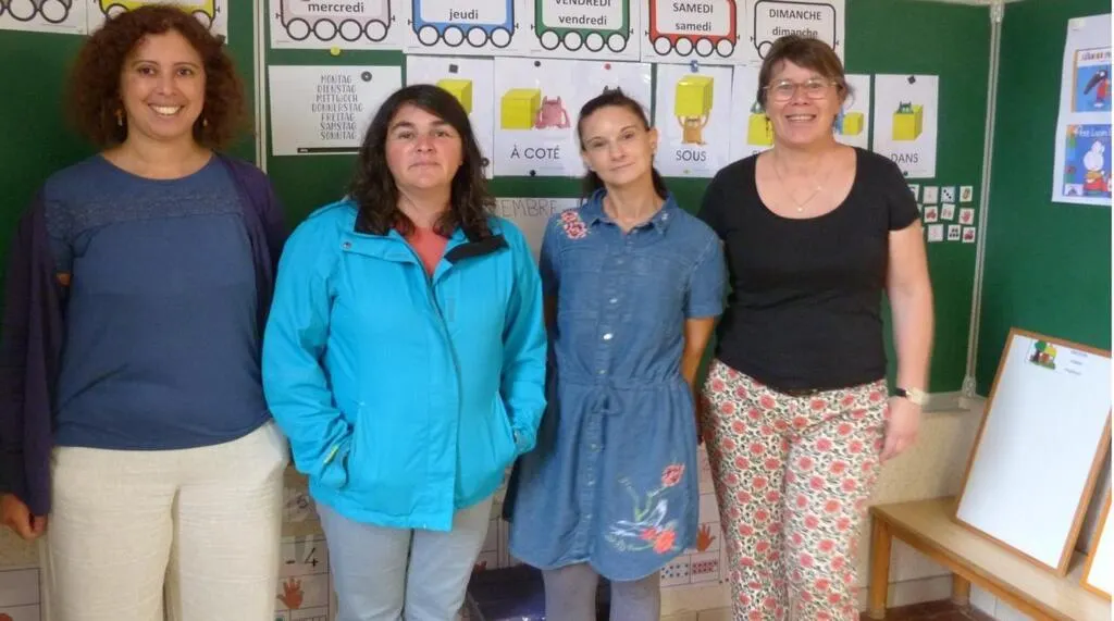 De gauche à droite, Myriam Pelletier, institutrice de la classe maternelle, Ingrid Billion, cantinière, Karine Bresson, Atsem et Caroline Rossignol, directrice de l’école. © Ouest-France