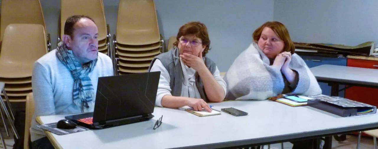 Jean-Marc Lavault, à gauche, secrétaire, avec Béatrice Chabillant, au centre, présidente, et Sonia Guaglio, trésorière, présentent le programme 2026. © Ouest-France