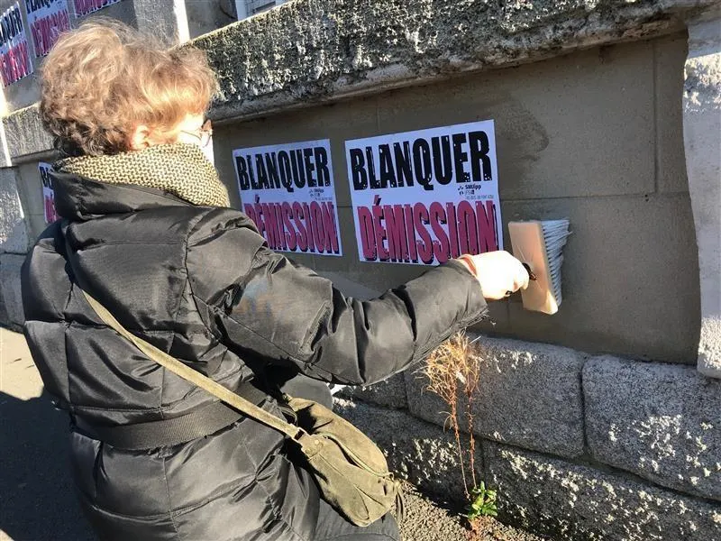 Un collage, sur les murs de l’inspection académique, demandant la démission de Jean-Michel Blanquer, le ministre de l’Éducation nationale. Ouest-France