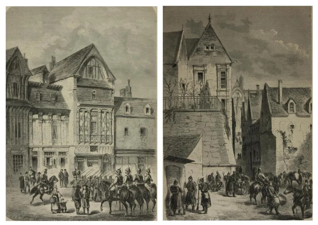 Les Prussiens au Mans, rue de la Reine-Bérengère et au pied de l’escalier des Pans de Gorron. Deux gravures conservées par les Musées du Mans. © Musées du Mans