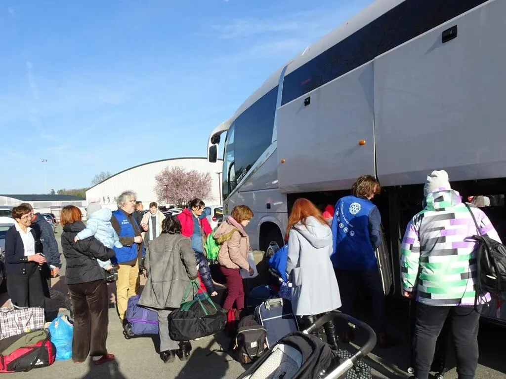« Les arrivants resteront dans les familles d’accueil, environ deux à trois semaines, le temps de leur trouver un hébergement durable en partenariat avec les associations et les communes. Il y a quatorze enfants de 2 à 9 ans et des plus grands. Ils ont vocation à être scolarisés. Nous faisons cela pour servir, c’est notre devise », déclare Françoise Hulaud, gouverneure du district du Rotary. Les arrivants ont le statut de réfugiés de guerre. Ils ont droit à l’aide médicale d’État.