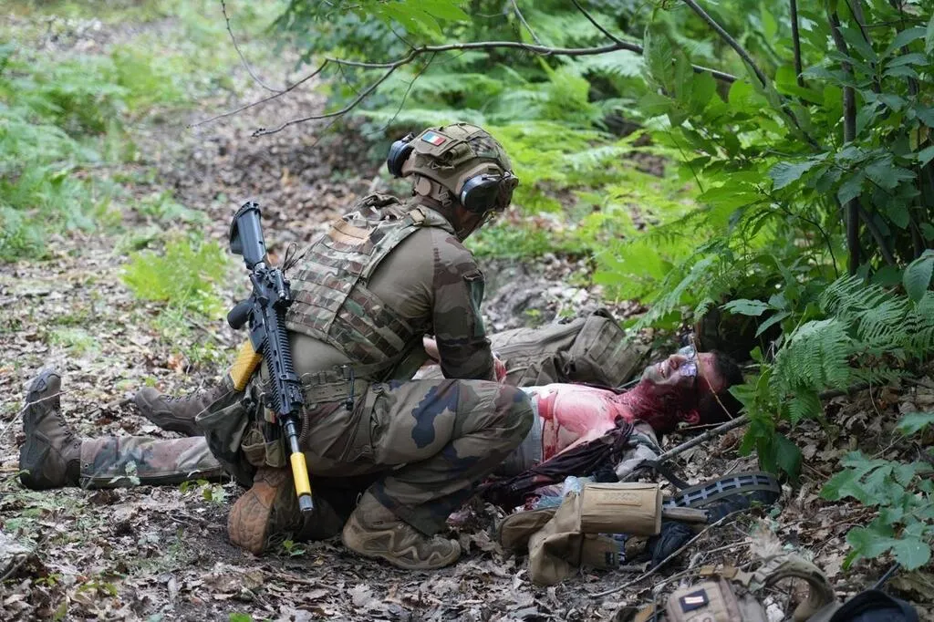 Un marsouin en exercice dans la forêt de Bonnétable, ce mercredi 2 juillet 2025. © Ouest-France