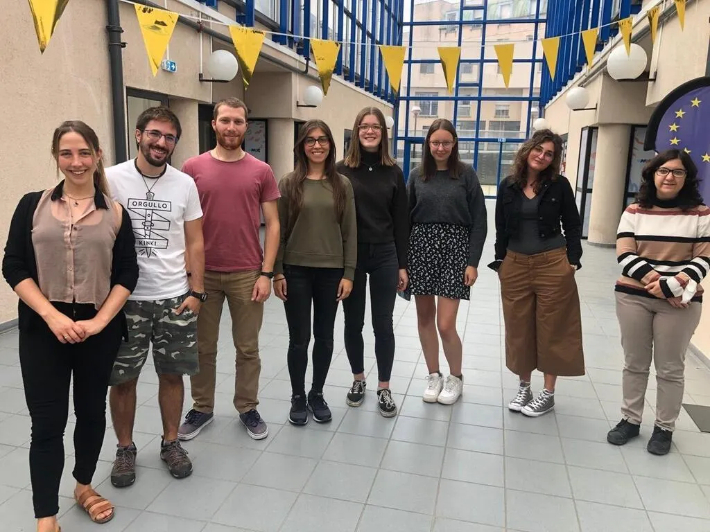 Les nouveaux jeunes du Corps européen de solidarité, en mission dans les six MFR, au lycée Joseph-Roussel et à la maison de l’Europe du Mans : Erika, Iago, Lorenzo, Silvia, Fenja, Anna-Sophie, Monica et Susanna. © Ouest-France