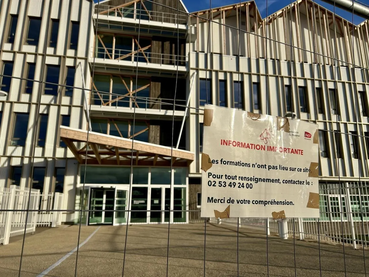 Le technicampus SNCF du Mans devait ouvrir le lundi 9 mars 2026. Près d’un mois plus tard, il est toujours fermé et devrait le rester encore plusieurs semaines. © Le Maine Libre
