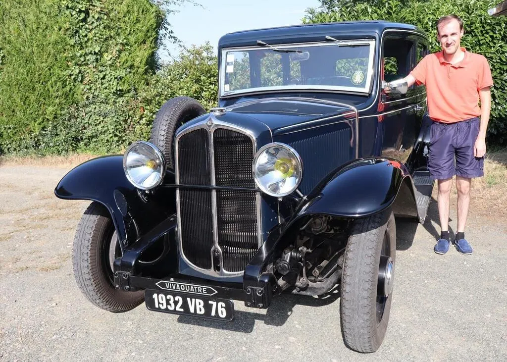 Valentin Brossier est l’heureux propriétaire de cette Renault Vivaquatre de 1932. © Le Maine Libre