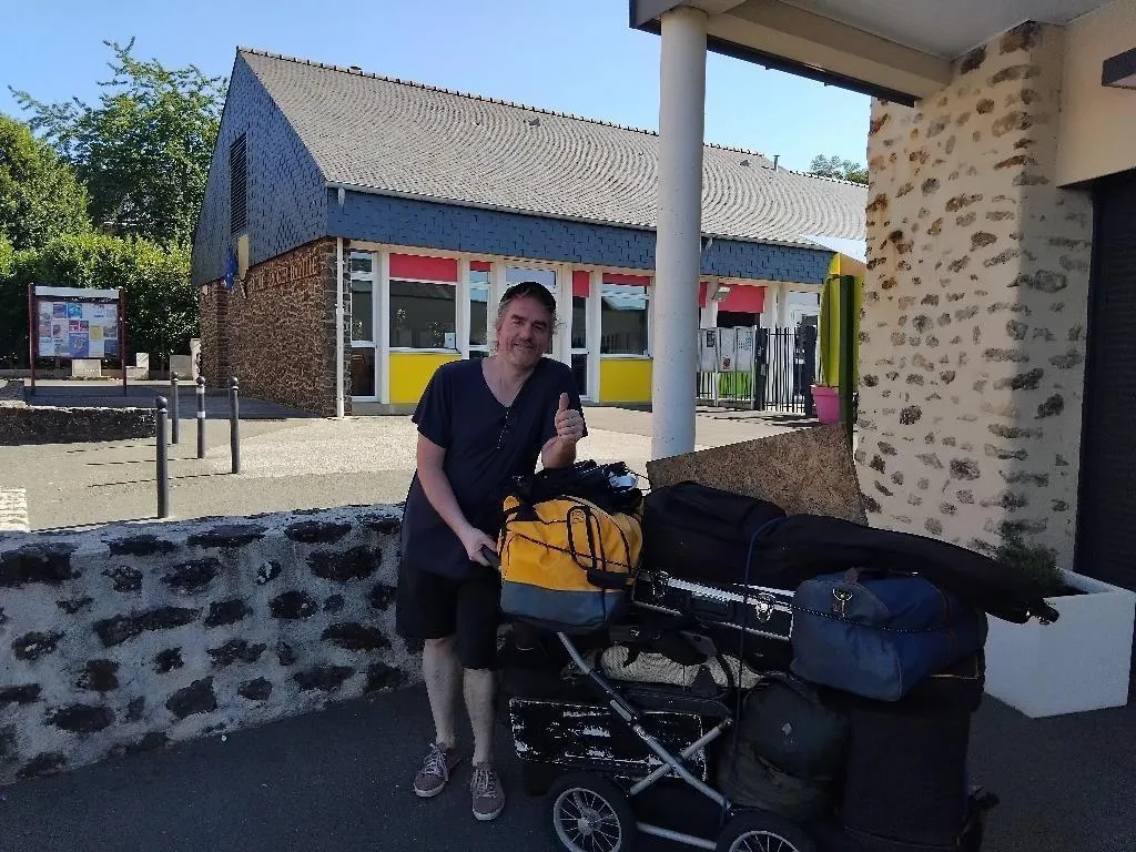 Après son concert, un couple d’Aigné lui a proposé le gîte et le couvert. Nous n’allions pas le laisser dormir sous sa tente !