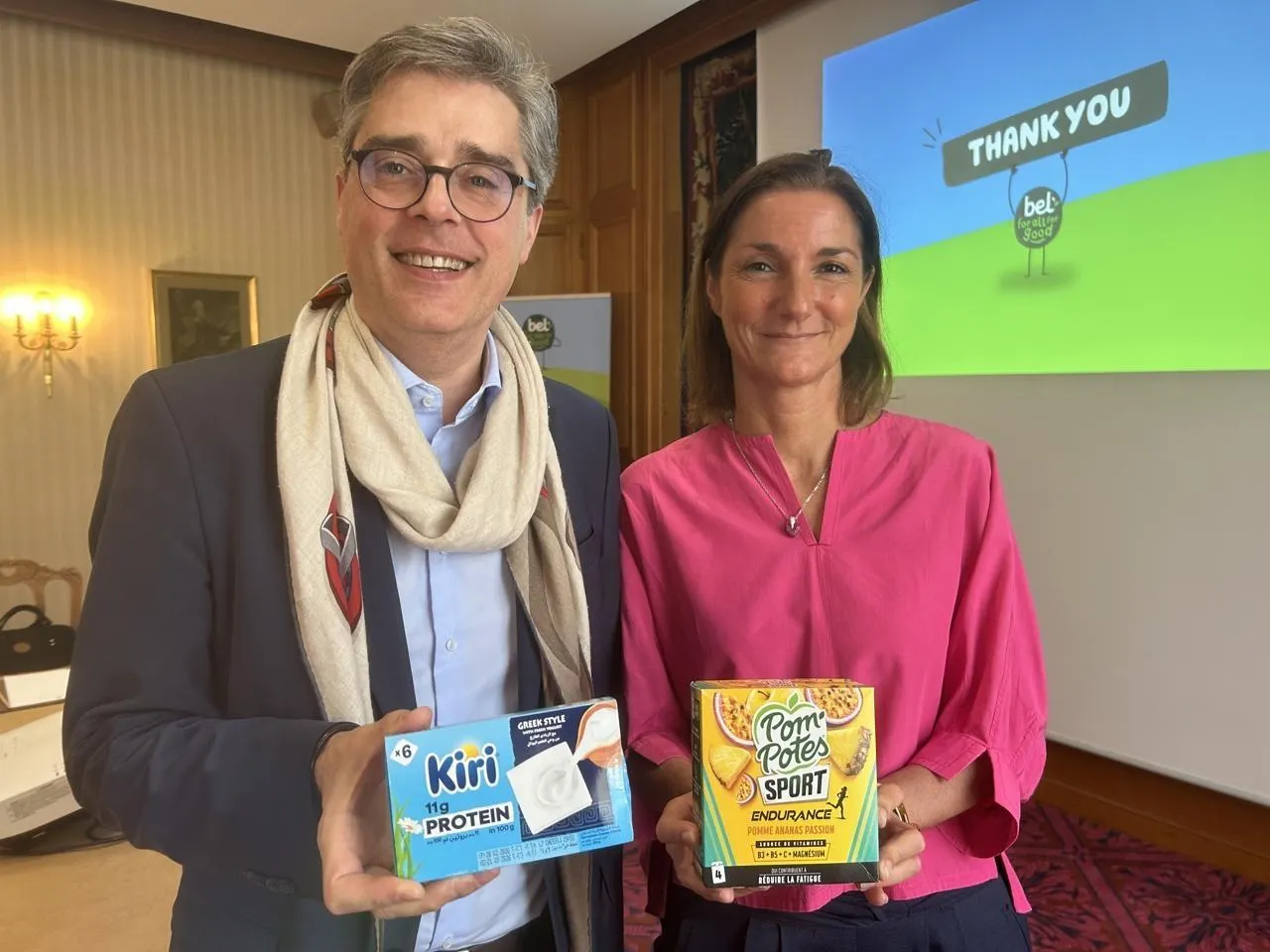 Frédéric Médard, directeur de l’impact et Cécile Béliot, directrice générale du groupe Bel, ce mercredi 25 mars 2026 à Paris, à l’occasion de la présentation des résultats annuels du groupe. © OUEST-FRANCE.