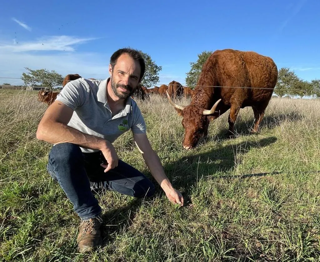 C’est une pratique peu commune dans nos régions. Agriculteur à Auvers-le-Hamon (Sarthe), Sébastien Champion est un adepte du pâturage régénératif. Pour nourrir son cheptel de vaches salers, il utilise quasiment exclusivement de l’herbe, en déplaçant chaque jour ses vaches de quelques dizaines de mètres. Une fois passées, elles ne reviendront pas au même endroit avant au moins deux mois afin que l’herbe se régénère. Une façon de protéger le sous-sol et d’y capter un maximum de CO2, participant ainsi à la lutte contre le dérèglement climatique.