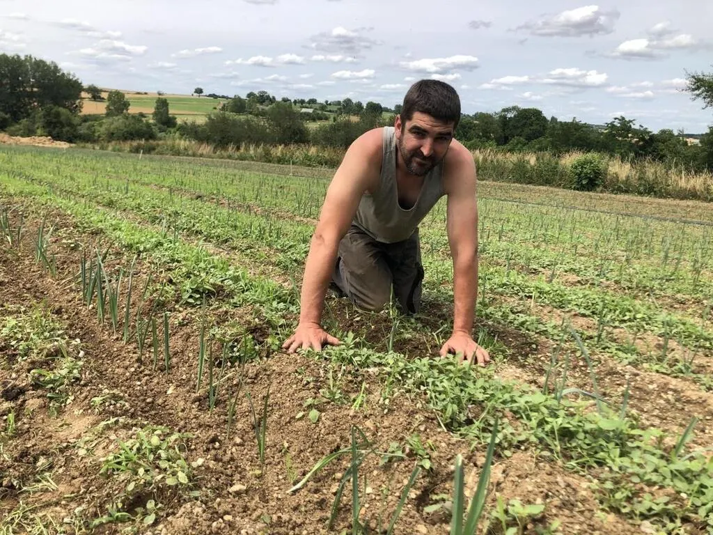 Florent Rouillard tient à remercier les volontaires qui l’ont aidé à désherber sa parcelle. Le maraîcher est touché par leur « geste spontané ». © Archive Le Maine Libre