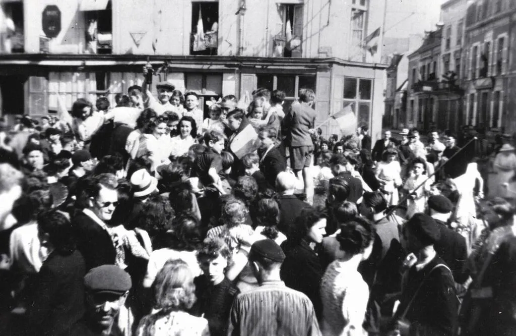 Comme partout en France, des scènes de liesse ont accompagné l’arrivée des forces alliées à La Flèche (ici place Henri-IV). © Collection de Daniel Potron