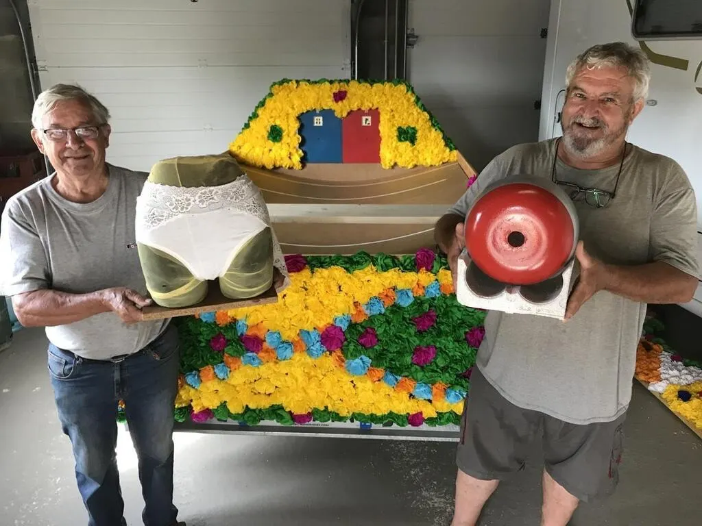 Le duo n’en est pas à son coup d’essai.  La dernière fois en 2015, nous avons disposé une boule de fort géante sur le char. Des figurants jouaient aux cartes – car fréquenter une société de boule de fort, c’est aussi taper le carton…Â