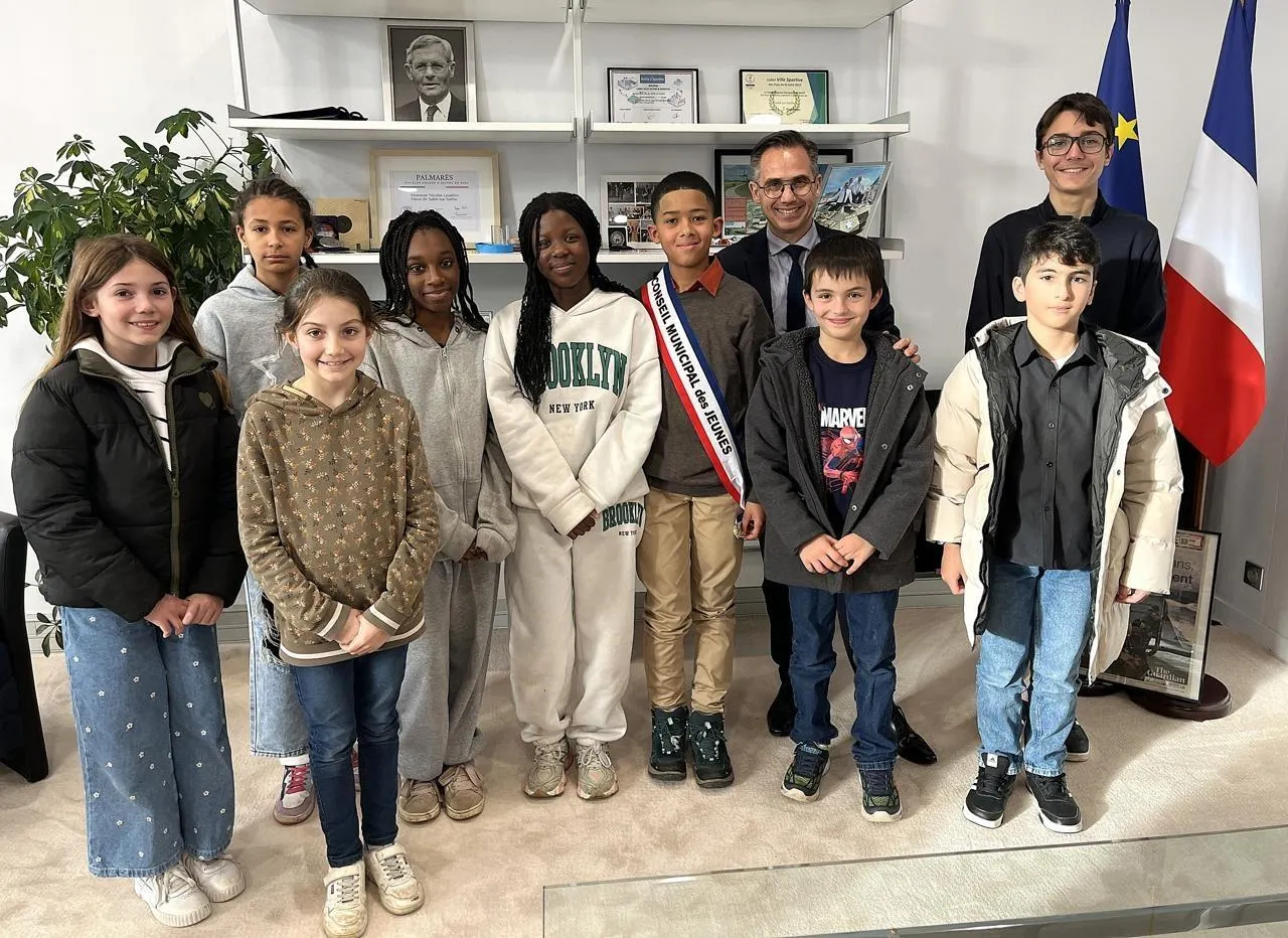 Les nouveaux membres du conseil municipal des jeunes de Sablé-sur-Sarthe ont rendu visite au maire, Nicolas Leudière, mercredi 10 décembre 2025, dans son bureau. © Ville de Sablé-sur-Sarthe