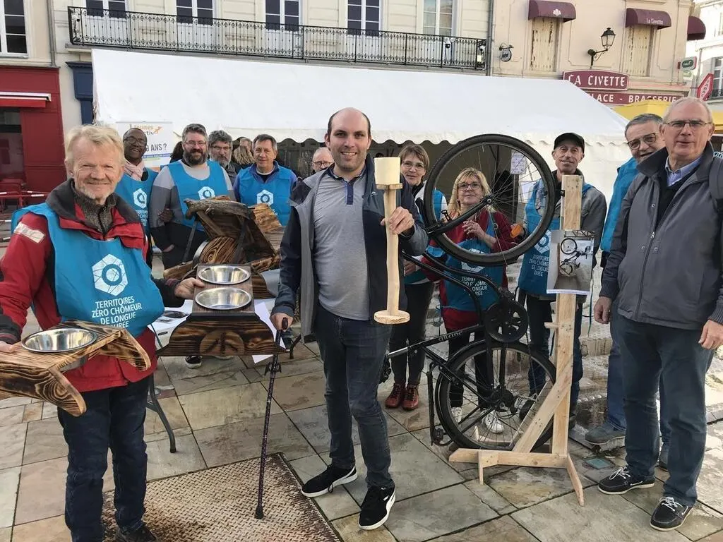 Une gamelle pour chien, un support pour vélo, une brouette… Ces objets sont fabriqués par les membres de l’association Territoire zéro chômeur de longue durée de La Flèche (Sarthe). Éloignés de l’emploi, ils poursuivent leur projet d’association même sans le soutien du conseil départemental.