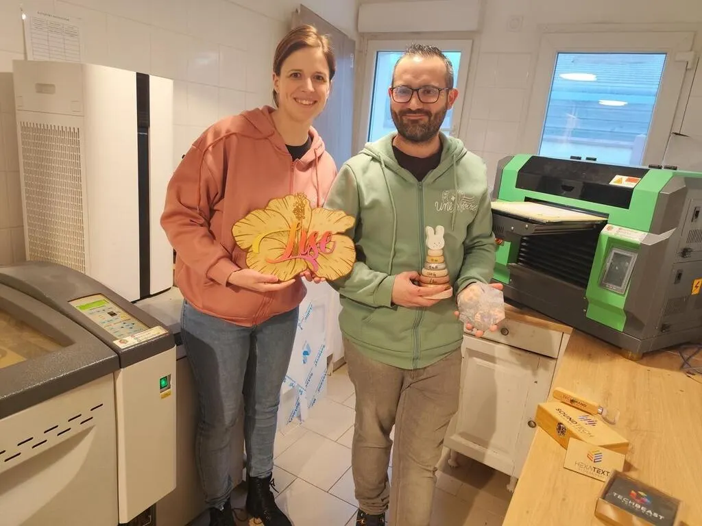 Emmanuel Fouchard était pâtissier et son épouse Alexandrine responsable adjointe d’un magasin de vêtements. Ils se passionnaient pour la gravure. Après l’achat d’un premier laser importé des États-Unis, tout s’est accéléré.  Lorsque j’ai vu que ça prenait de l’ampleur j’ai transformé l’atelier de pâtisserie pour l’activité de gravure et le garage héberge le stockÂ