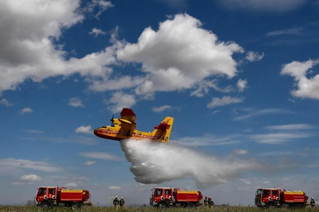 Quatre Canadair ont été déployés pour éteindre l’incendie dans l’Hérault, ce samedi 5 juillet 2025. © CHRISTOPHE SIMON / AFP