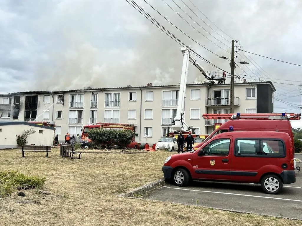 L’incendie, qui s’est déclaré dans un immeuble d’habitations ce lundi 23 juin 2025 à La Flèche (Sarthe), a mobilisé près de 80 sapeurs-pompiers et une quarantaine d’engins. Le feu, qui s’est déclaré vers 11 heures, n’a pu être maîtrisé qu’en milieu d’après-midi. Aucun des dix-huit logements n’a été épargné. Des solutions de relogement vont être proposées aux 16 familles qui y vivaient.