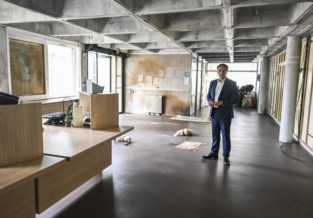 Fin juillet, un mois après l’incendie, l’accueil de la mairie de Coulaines avait pu être nettoyé. La phase de rénovation va bientôt commencer. © archives Le Maine Libre – Denis LAMBERT