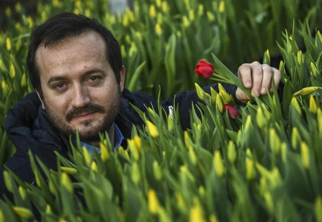 Le président Jean-Philippe Bigot (à droite) et son fils Nicolas, directeur général de Bigot Fleurs, ici au milieu des cultures de tulipes, affichent leur enthousiasme au moment d’ouvrir ce nouveau chapitre historique pour l’entreprise. © Photo Le Maine Libre Denis LAMBERT