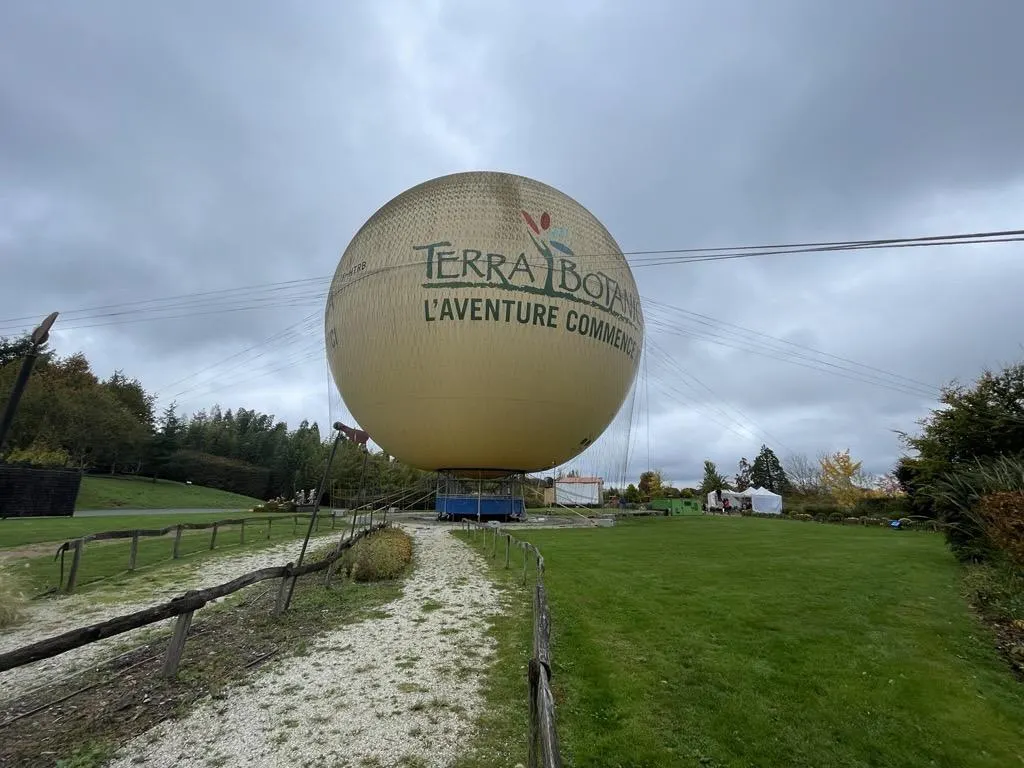 Le ballon Terra Botanica était présent depuis dix ans, dès l'ouverture du parc. Si " l'aventure commence ici" comme l'affichait sa toile, l'aventure s'arrête en 2026 pour l'attraction. © Ouest-France