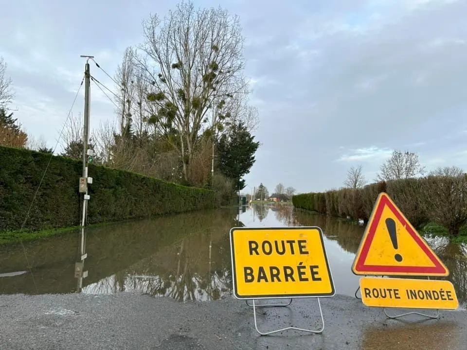 Les champs gorgés d’eau ont été complètement inondés, les fossés ont débordé et les routes impraticables juste avant l’entrée des communes.