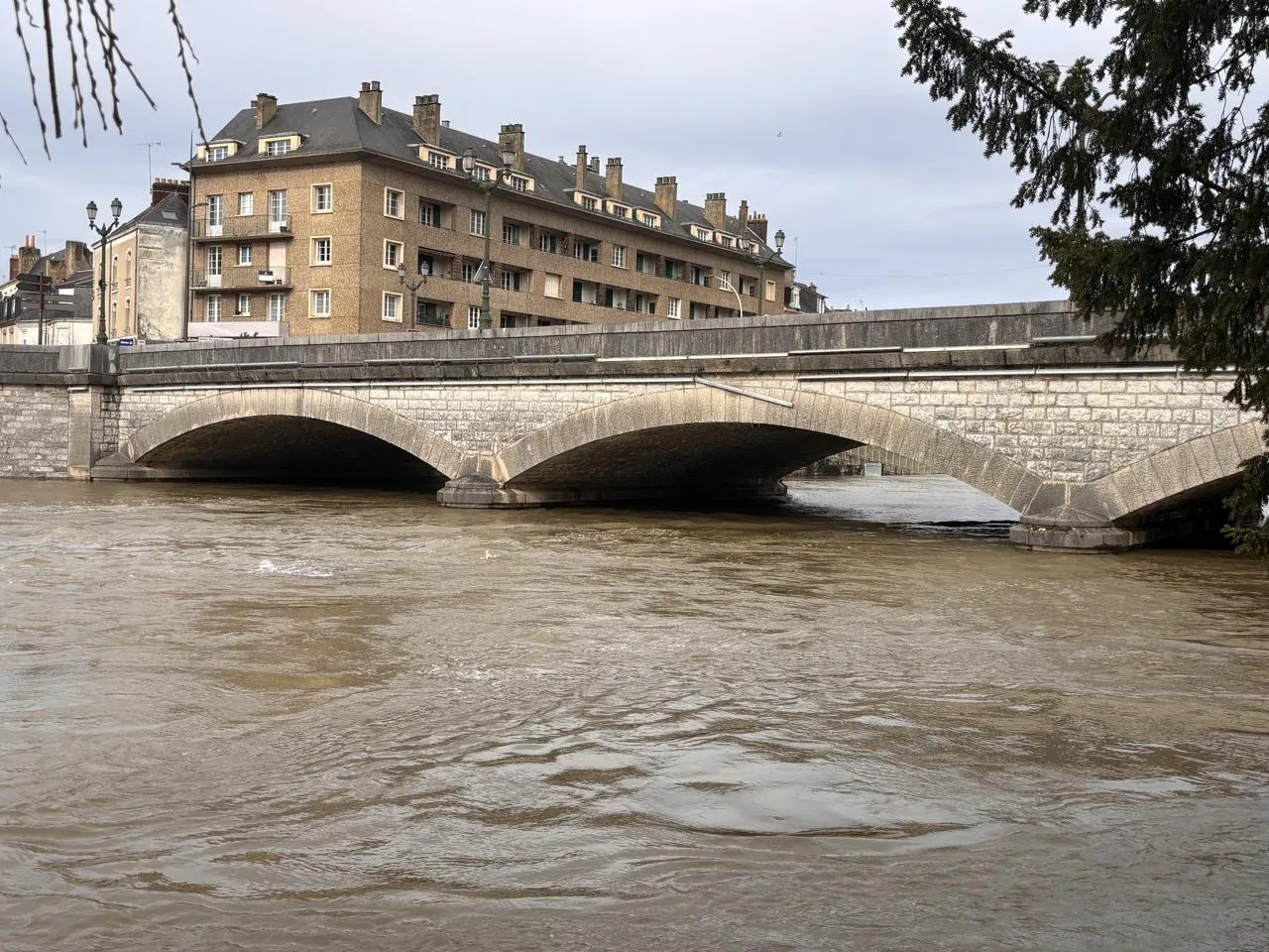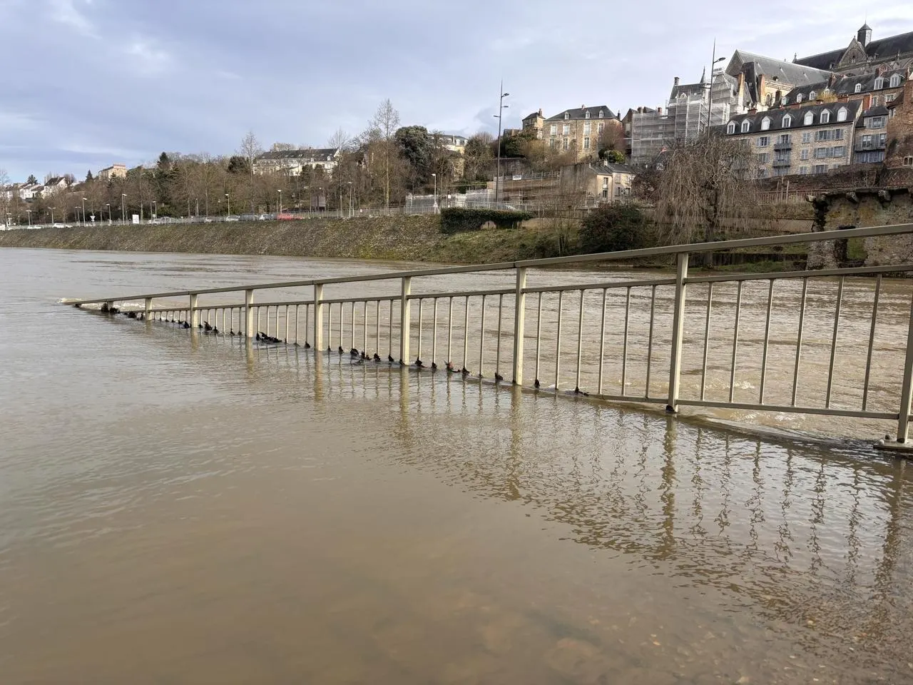 Ce lundi 16 février 2026, l’échelle de crue du Pont Yssoir, dans le centre-ville du Mans, indiquait une légère décrue après le pic hivernal de la veille. Ouest-France