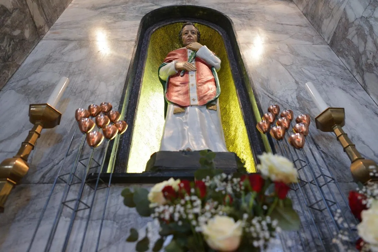 Saint-Valentin est bien un saint… alors l’église catholique d’Argentan le célèbre en rendant service aux amoureux. (Photo : une statue du saint patron des amoureux, saint Valentin, à Dublin, en Irlande). © NurPhoto via AFP