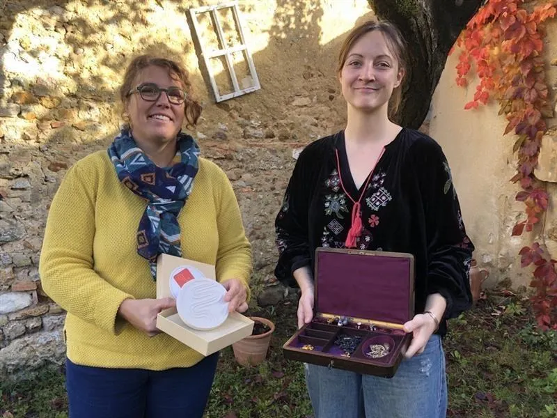 Élise Foucault (à gauche) est sculpteure à Brains-sur-Gée, à l’ouest du Mans, et Charlotte Vial Olejnik est gainière à La Flèche. Toutes les deux exposeront leurs Å“uvres lors du Salon international du patrimoine culturel au Carrousel du Louvre, à Paris, du 23 au 26 octobre 2025. © Ouest-France