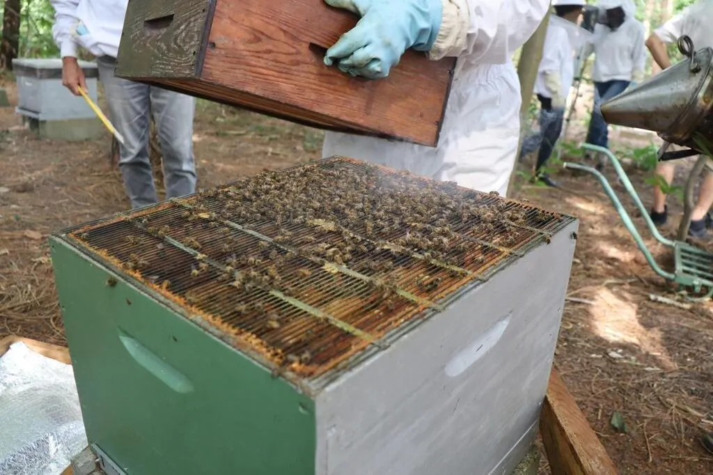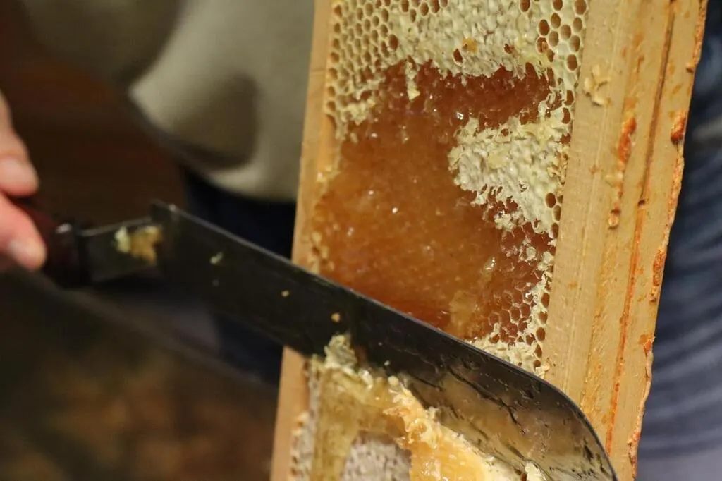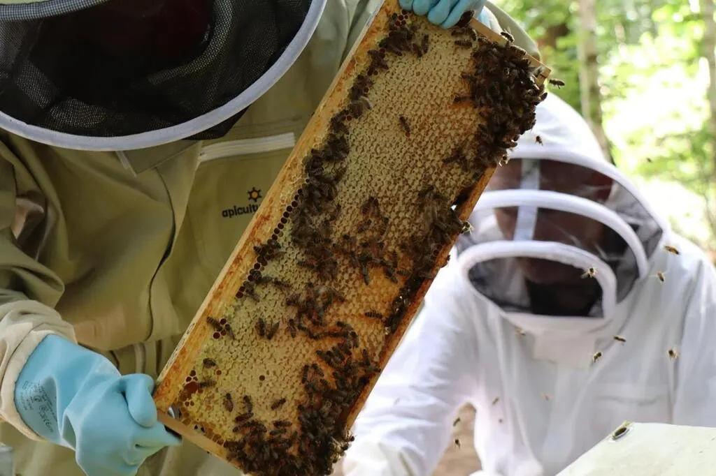 Récolte au rucher école de l’Union syndicale apicole sarthoise, à La Chapelle-Saint-Aubin, près du Mans. © Ouest-France