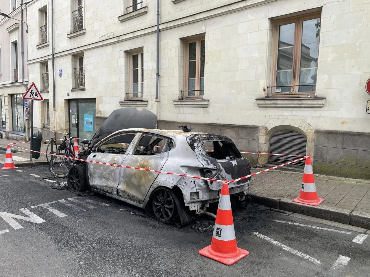L’un des deux véhicules incendié dans la nuit du 31 mars, rue Chevreul à Angers (Maine-et-Loire). © Ouest-France