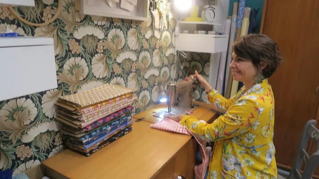 C’est grâce à sa grand-mère que Delphine Danard s’épanouit dans son métier de créatrice en textile. Ici, dans son atelier. © Ouest-France