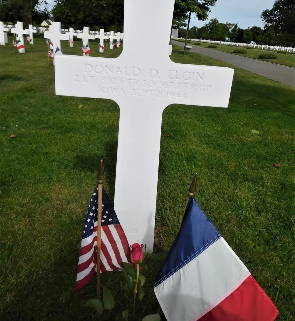 Depuis plus de 10 ans, la tombe du lieutenant Elgin est fleurie tous les ans lors du Mémorial Day par Jacky Emery et son épouse.