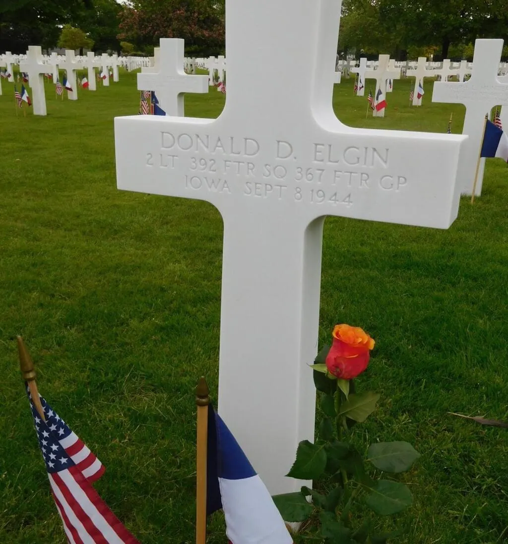 Depuis près de vingt ans, Jacky Emery fleurit chaque année la tombe de Donald Elgin lors du Mémorial Day. Ce geste de respect et de mémoire se répète au cimetière militaire américain de Bretagne, où repose ce héros. Une nouvelle fois, des fleurs ont été déposées sur sa tombe. Se recueillir sur sa tombe, située à 150 kilomètres du lieu de son crash, est un acte chargé d’émotion, de respect et de gratitudeÂ
