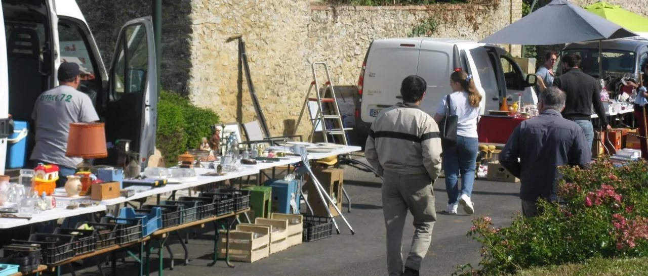 Le lendemain, le centre bourg était le cadre du bric-à -brac annuel, ou près de 75 exposants sont venus proposer leurs objets diversifiés (vêtements aux fruits ou vaisselle, outils, etc.) Entre-temps et pour la première fois, une guinguette résonnait au son de l’accordéon sous une chaumière.