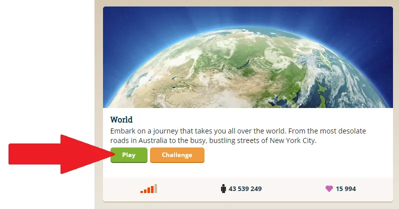 Chaque partie dure 5 manches. À chaque manche vous pouvez gagner 5 000 points. Pour ce faire, il faut avoir placé le curseur à moins de 150 mètres de son point de départ (dans la version « world »)Â