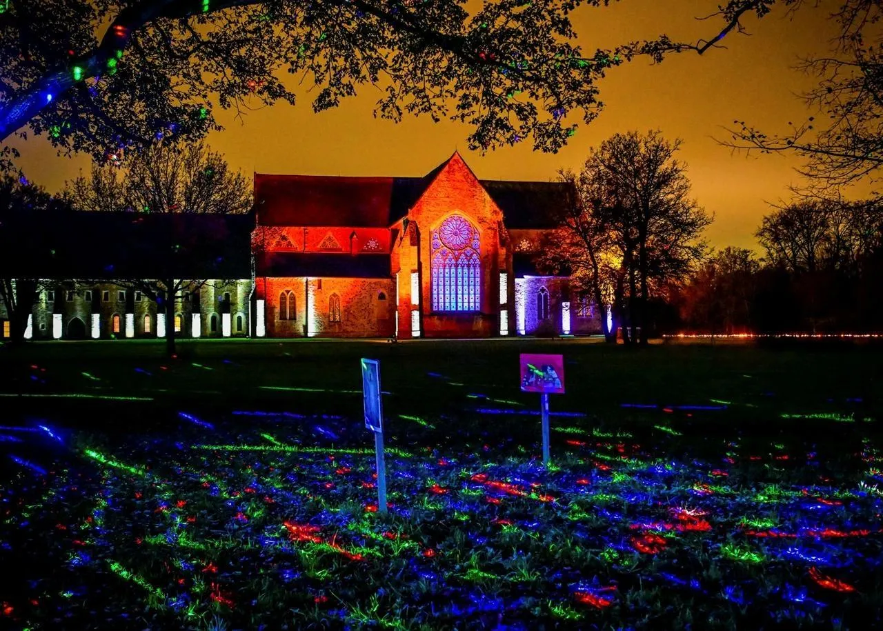 Ce week-end est la dernière occasion pour admirer les illuminations installées à l’abbaye de l’Épau. © Photo Le Maine Libre – Yvon LOUÉ