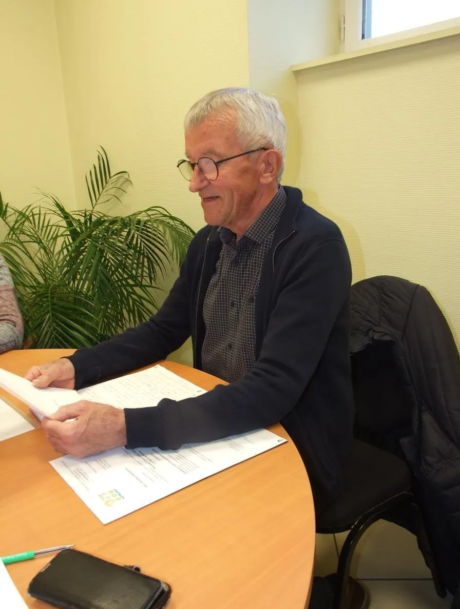 La lecture des consignes de vote du maire de Duneau (Sarthe) Joël Ciron. © Ouest-France
