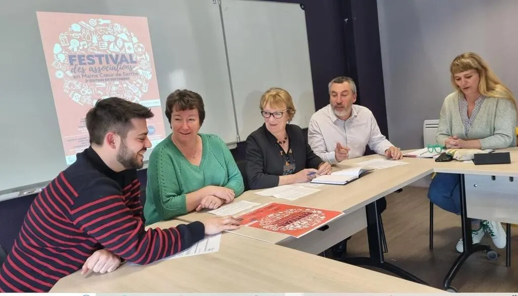 Les élus et les personnels communautaires, réunis à l’Hôtel communautaire de Joué-l’Abbé, ont présenté la nouvelle maquette du Festival des associations 2023. © Ouest-France