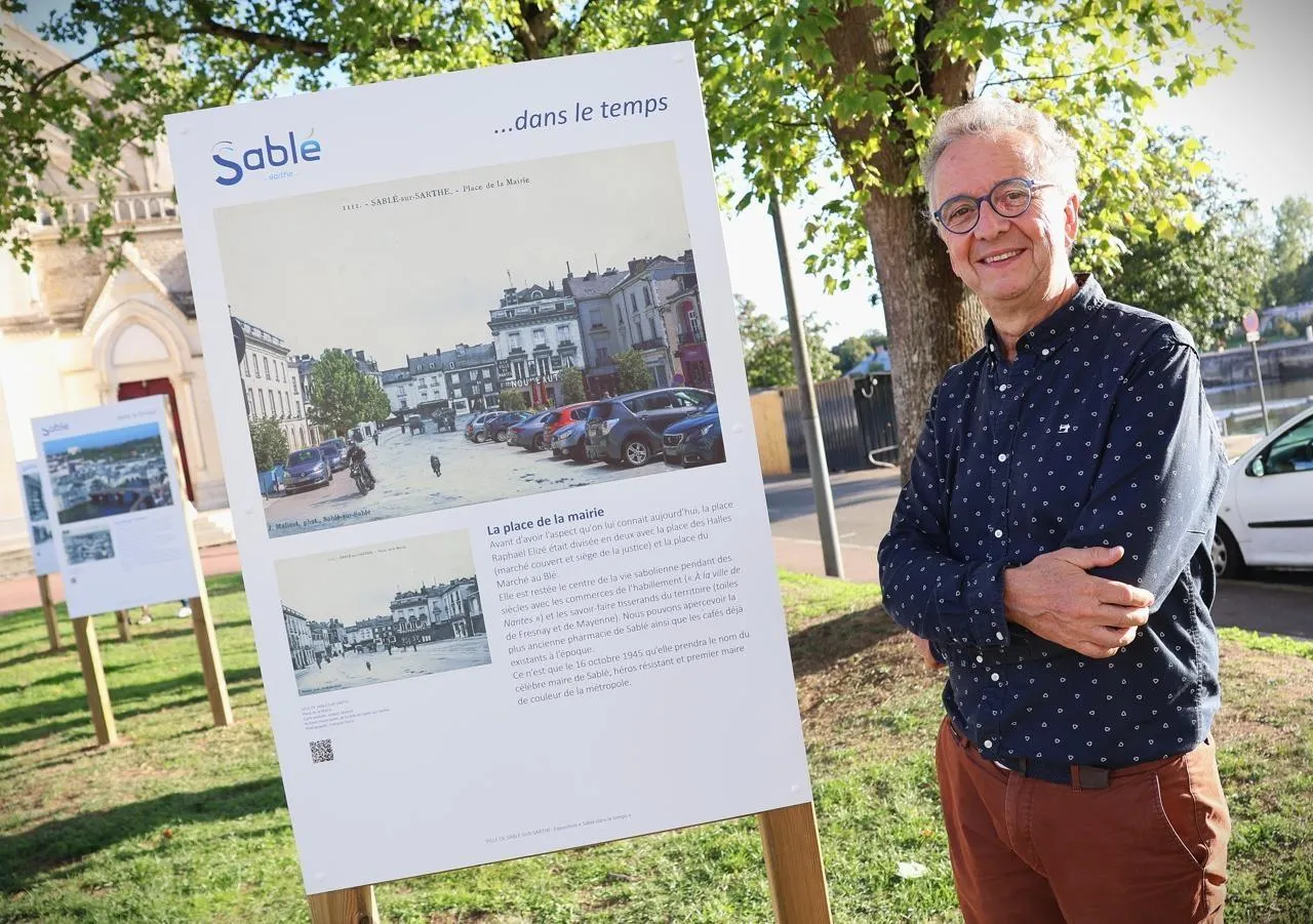 Un voyage dans le temps grâce à la photographie. La municipalité de Sablé-sur-Sarthe dévoile à l’occasion de l’édition 2025 des Journées européennes du patrimoine (JEP) une exposition plutôt originale, en clin d’œil au bicentenaire de la photographie, qui sera fêté à partir de septembre 2026. Cette installation positionnée sur le parvis de l’église propose douze images de la ville où se mêlent des éléments de décors tirés de clichés vieux de 100 ans et d’autres tirés de clichés pris depuis la même position aujourd’hui.