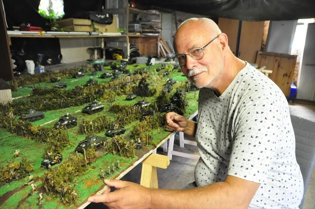 Lucien Caron présentera l’imposant diorama qu’il a réalisé, une reconstitution du débarquement des Alliés en juin 1944 et des combats qui ont suivi. © Le Maine Libre