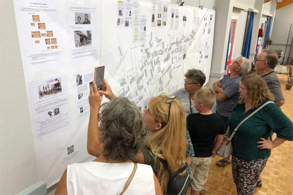 Archives, témoignages… le résultat est bluffant. Dans la salle sont présentées deux frises de plusieurs mètres, des plans des deux quartiers où sont positionnés les anciens commerces avec pour chacun une généalogie des commerçants. Elles sont complétées par des objets en lien avec ces anciens métiers, la projection de deux films ou encore un focus sur  quatre familles notoirement connues qui ont exercé une activité pendant plusieurs générations.Â