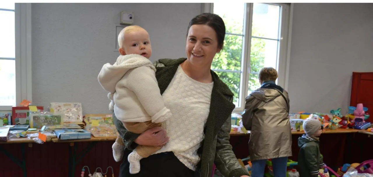 Venue avec son fils Augustin, Claire apprécie la qualité et les prix modiques des jouets mis en vente. © Le Maine Libre