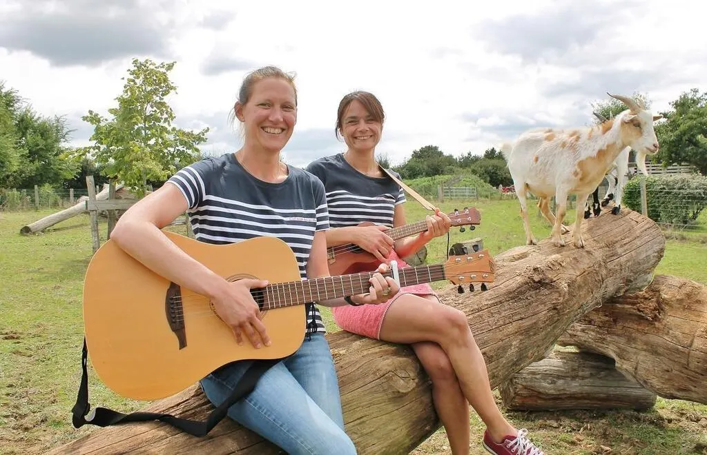 Une marinière, une guitare, un ukulélé et de la bonne humeur. C’est la signature des RhumantiqueS, le jeune groupe formé par les Juignéennes Marie Lucas et Violaine Fortin. L’une est éducatrice spécialisée auprès des enfants. L’autre travaille pour la ferme La Jaluère. Depuis qu’elles ont fait connaissance par l’intermédiaire de leurs loupiots au marché de Noël de Juigné-sur-Sarthe en 2015, les deux copines se sont découvert une passion commune pour la musique… Et l’humour.