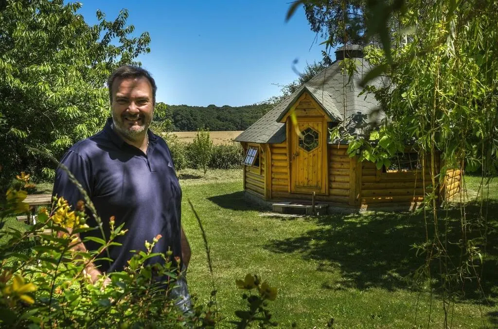 Le Mans, lundi 22 juin 2020. Emmanuel Couléard, ici, devant le kota finlandais en pleine nature. © Photo Le Maine -Libre DENIS LAMBERT