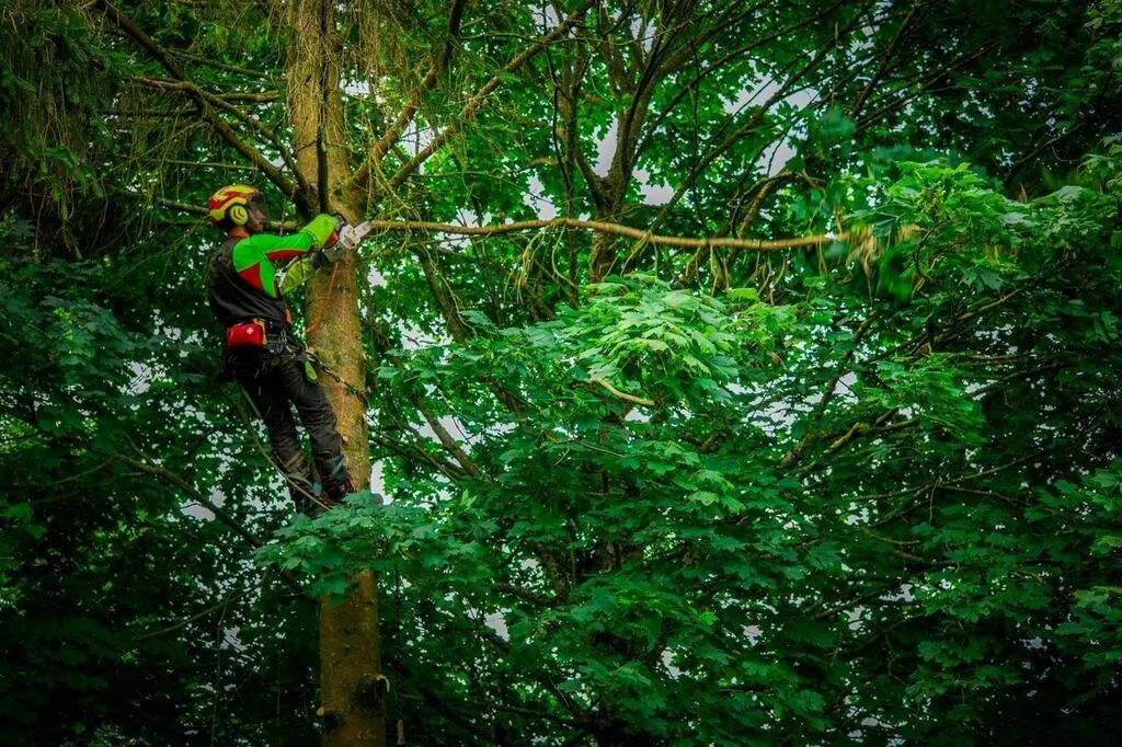 L’élagueur veille à ce qu’aucune branche coupée ne soit oubliée en hauteur dans les arbres voisins. © Ouest-France