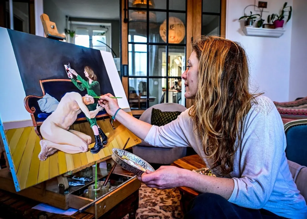 Au Mans, l’artiste peintre Céline Pelat inverse les codes de la représentation classique avec ses toiles où, pour une fois, ce sont les hommes qui posent nus à côté de femmes vêtues. Un projet né d’un questionnement féministe, devenu une réflexion sociologique.