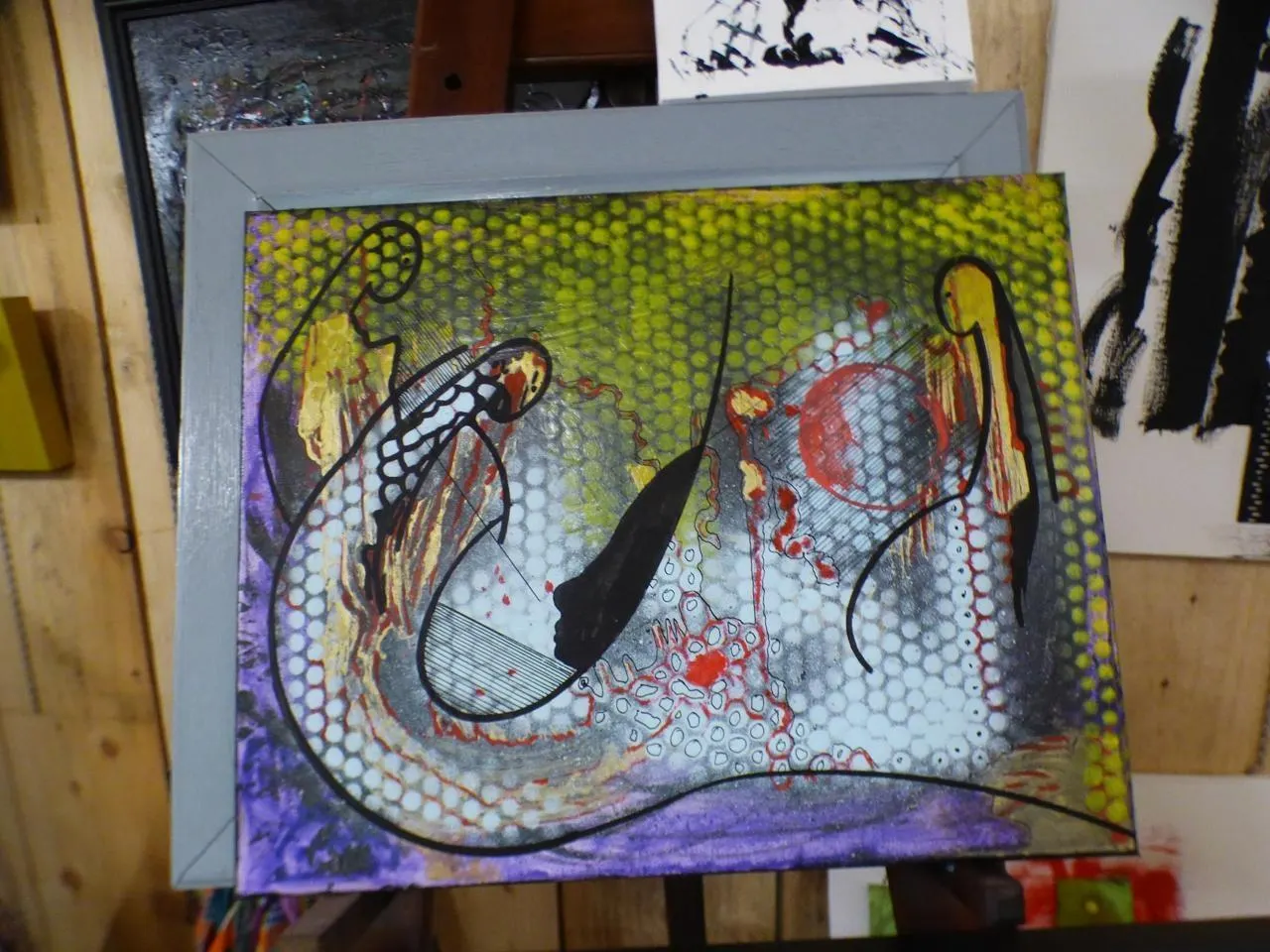 Ce randonneur de l’art aime fusionner différents chemins de création. Le tachisme cohabite avec la géométrie, les collages sont précis, l’abstrait voisine les portraits finement ciselés, des silhouettes oniriques retiennent l’observateur au détour d’un crayonné au stylo-bille, d’une sculpture ou d’une peinture. Le tout révèle souvent un humour pinçant où la comédie de la vie se parfume voluptueusement de tragédie humaine. « Ce très pur visage de profil est un motif récurrent, fait remarquer l’auteur. Ici, il est l’Enfant rejoint par les rois mages. Je ne m’en suis aperçu qu’une fois le tableau déjà bien avancé. »