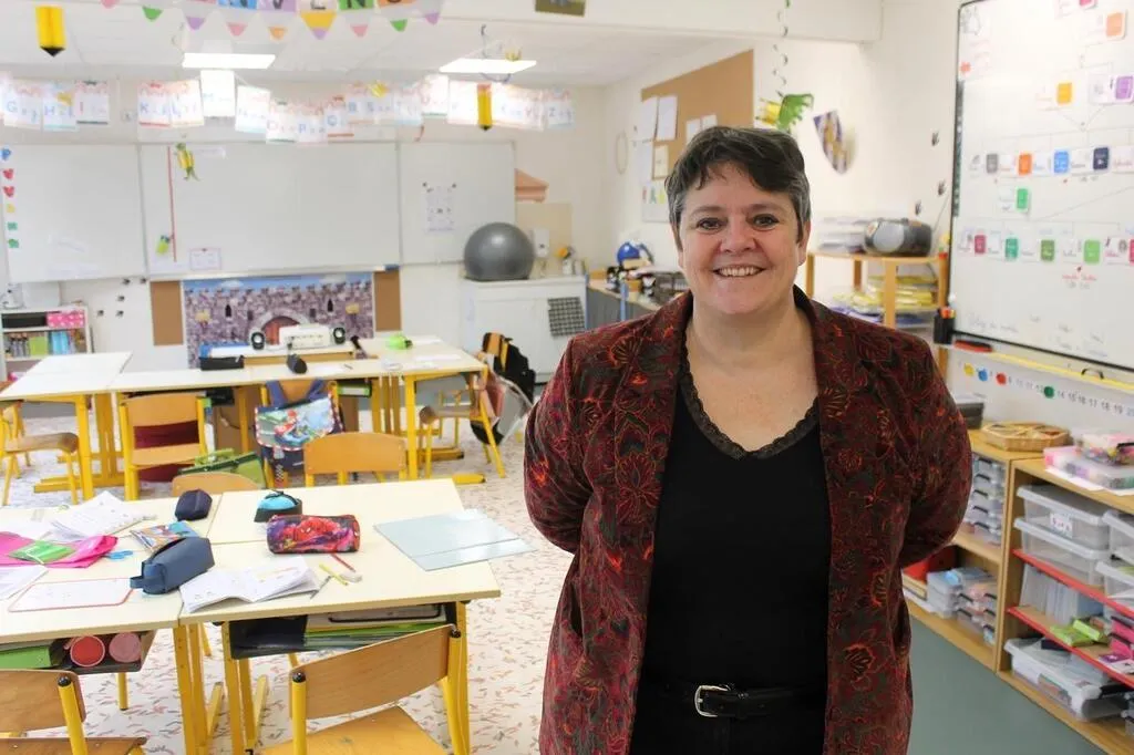 La maire Mélanie Cosnier, dans l’une des trois classes de l’école communale fraîchement rénovée. © Ouest-France