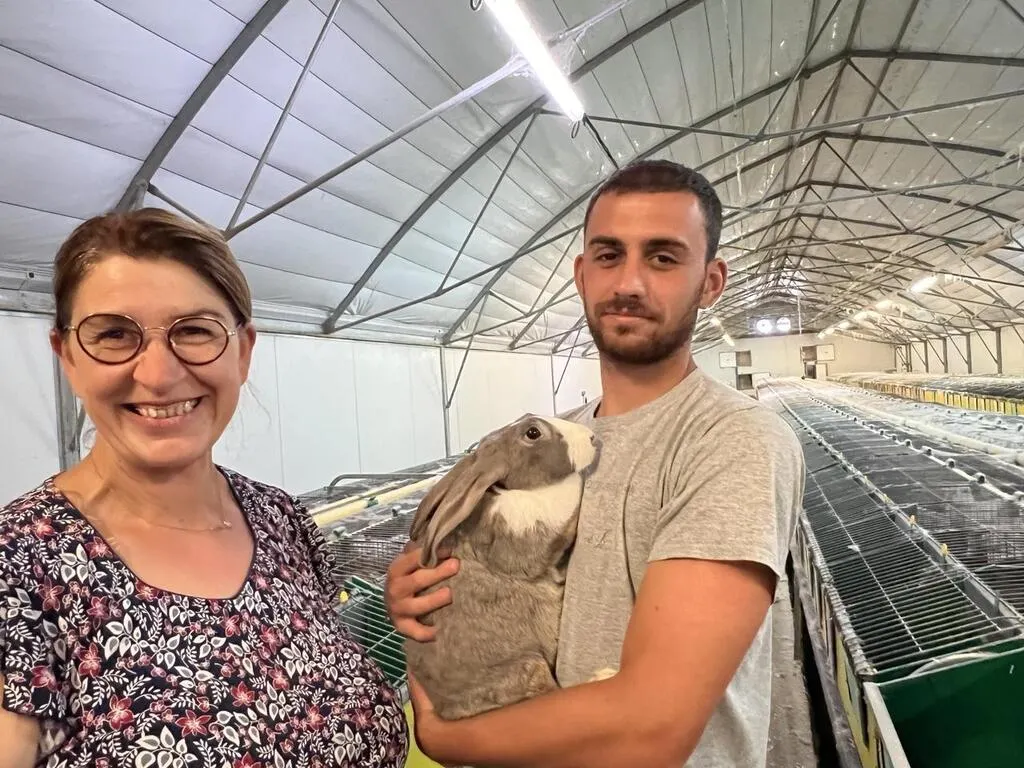 Roselyne Trassard, alias Rosy Lapin, et son fils Jérémy élèvent leurs lapins et les vendent 100 % en direct. © Yanne Boloh